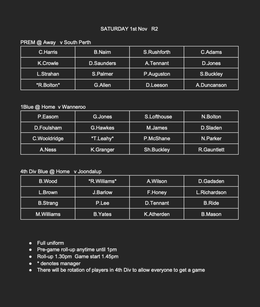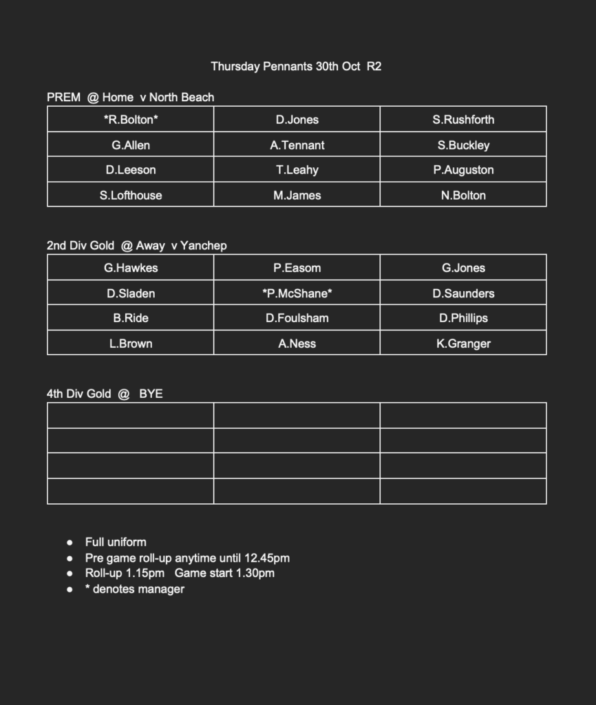 It is the responsibility of team members to Check the Pennant Board in the Club House. For any changes that may have taken place .