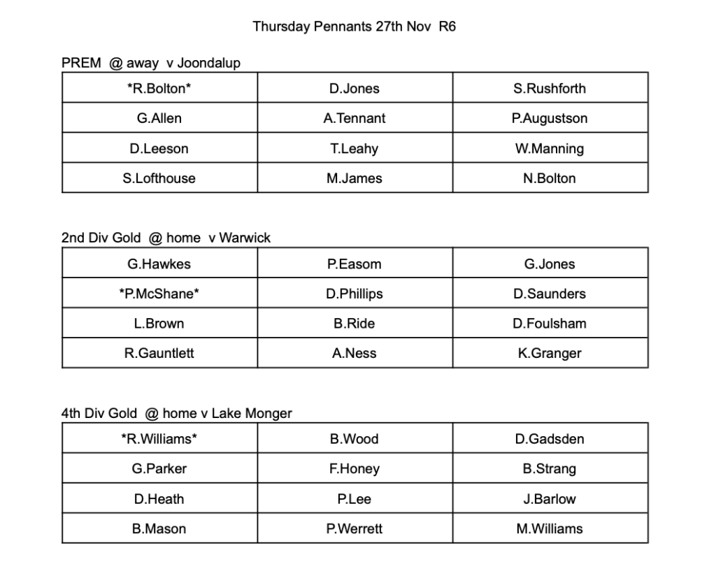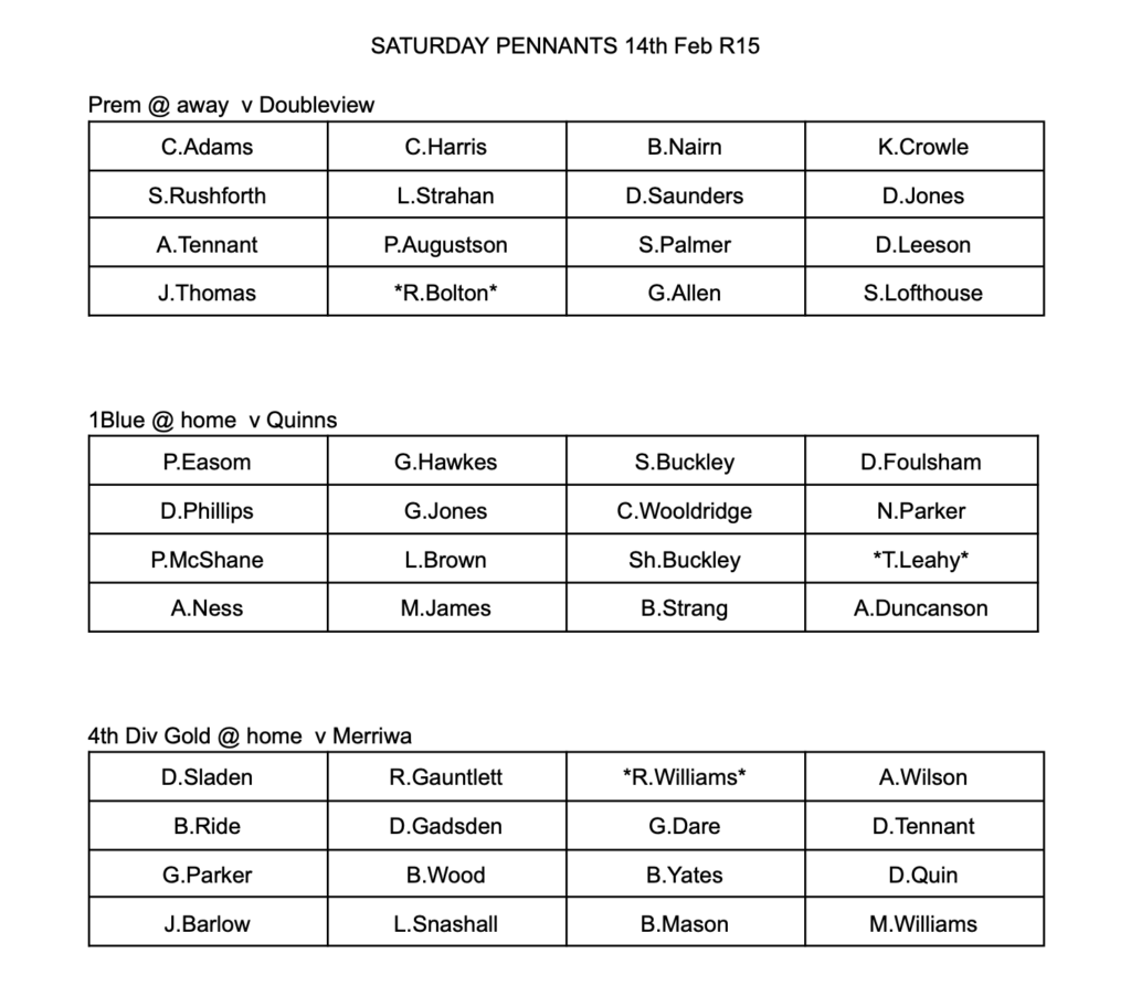 It is the responsibility of team members to Check the Pennant Board in the Club House. For any changes that may have taken place .