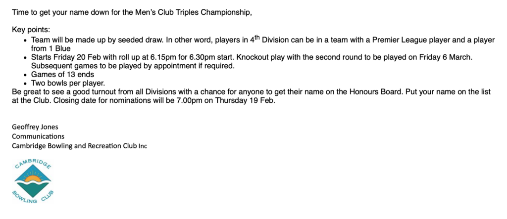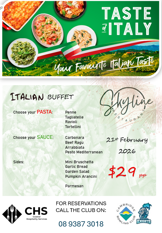 Skyline Restaurant Publish Date 10/12/2025Italian Night Publish Date 24/2/2026 Publish Dte 24/02/2026 Publish Date 23/02/2026 Sky Line Menu Sky Line Menu Sky Line Menu Post Date 24/01/2026 What's On At The Cambridge Bowling Club Post Date 26/01/2026 Post Date 16/02/2026 Post Date 10/02/2026 New State Pairs Winners Post Date 29/12/2025 Post Date 29/12/2025 Publish Date 16/12/2025 Publish Date 12/12/2025 Publish Date 10/12/2025 Publish Date 10/12/2025 Publish Date 10/12/2025 Bowls News Audi Cup Post Date 03/01/2026 Menu For Skyline Restaurant Opening NightThis Could Be The Future at Cambridge Very Impressive Trainer Legal Offer Promotion to 2nd Division Winners Stuart Davies Cup What’s On